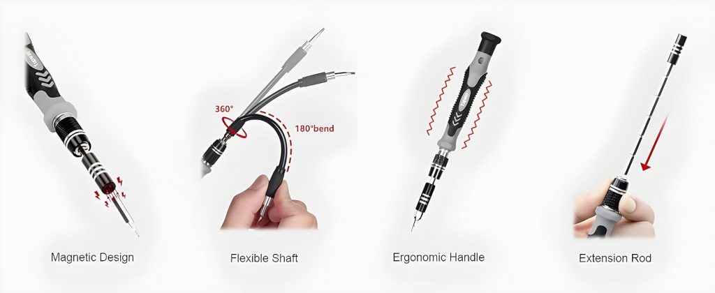 Magnetic Tips – Hold screws firmly, no more dropping tiny parts.