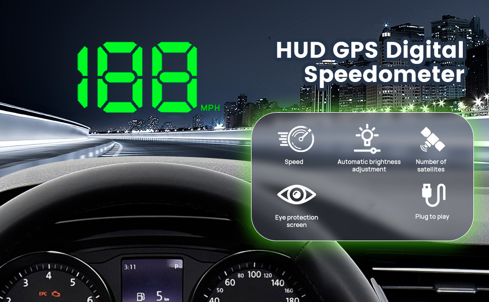 ✅ Crystal-Clear Projection — Bright LED display stays visible even under sunlight. ✅ Screen Hood Protection — Blocks glare to protect your eyes and make readings sharper. ✅ Plug & Play Setup — No tools needed! Just connect, place it on your dashboard, and drive. ✅ Accurate Speed Readings — Monitors your real-time speed to prevent accidental overspeeding. ✅ Universal Fit — Works with most vehicles — cars, SUVs, and trucks.